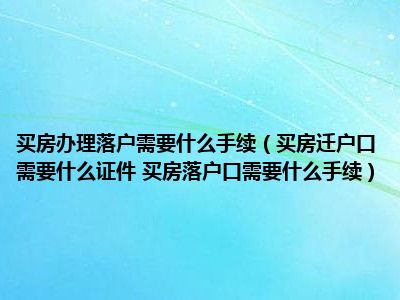 导读 目前大家应该是对买房迁户口需要什么证件 买房落户口需要什么手续比较感兴趣的,所以今天好房网小编CC就来为大家整理了一些关于买房迁户口