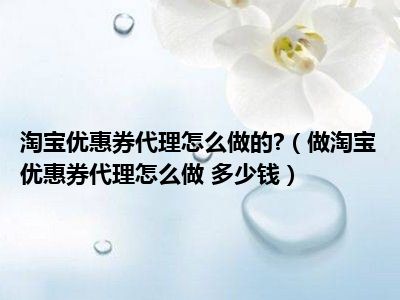 目前应该是有很多小伙伴对于做淘宝优惠券代理怎么做 多少钱方面的信息比较感兴趣,现在小编就收集了一些与做淘宝优惠券代理怎么做 多少钱相关的信息来分享给大家,感兴趣的小伙伴可以接着往下看,希望会帮助到你哦。