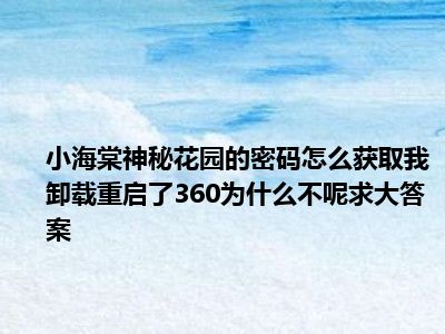 相信目前很多小伙伴对于小海棠神秘园怎么获取密码啊?我把360卸载了也重启了为什么不行啊??求大大解答都比较感兴趣,那么小编今天在网上也是收集了一些与小海棠神秘园怎么获取密码啊?我把360卸载了也重启了为什么不行啊??求大大解答相关的信息来分享给大家,希望能够帮助到大家哦。
