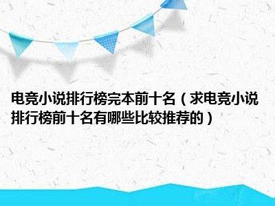 相信目前很多小伙伴对于求电竞小说排行榜前十名,有哪些比较推荐的?都比较感兴趣,那么小编今天在网上也是收集了一些与求电竞小说排行榜前十名,有哪些比较推荐的?相关的信息来分享给大家,希望能够帮助到大家哦。