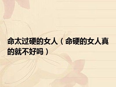 目前应该是有很多小伙伴对于命硬的女人真的就不好吗方面的信息比较感兴趣,现在小编就收集了一些与命硬的女人真的就不好吗相关的信息来分