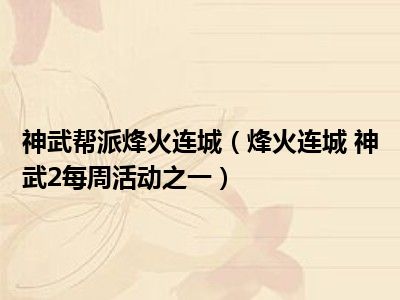 1、烽火连城是《神武2》的一个组队进行攻城对抗类的每周活动。