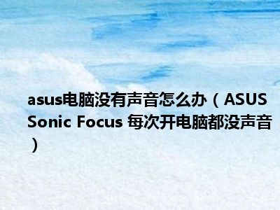 相信目前很多小伙伴对于ASUS Sonic Focus 每次开电脑都没声音都比较感兴趣,那么小编今天在网上也是收集了一些与ASUS Sonic Focus 每次开电脑都没声音相关的信息来分享给大家,希望能够帮助到大家哦。