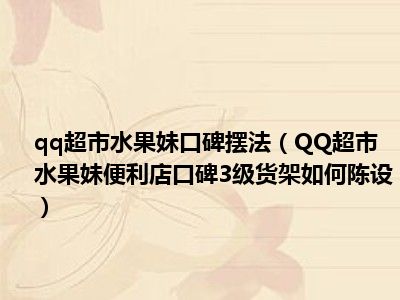 相信目前很多小伙伴对于QQ超市水果妹便利店口碑3级货架如何陈设都比较感兴趣,那么小编今天在网上也是收集了一些与QQ超市水果妹便利店口碑3级货架如何陈设相关的信息来分享给大家,希望能够帮助到大家哦。