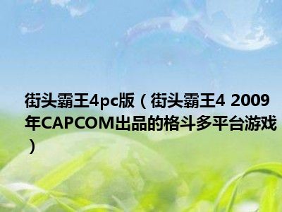 导读 目前是有很多朋友们对于街头霸王4 2009年CAPCOM出品的格斗多平台游戏这个信息比较感兴趣,那么小编也是收集了一些街头霸王4 2009年CAPCOM