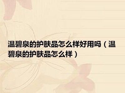 拓展资料:一、温碧泉温碧泉是广州碧欧特化妆品有限公司的知名品牌。