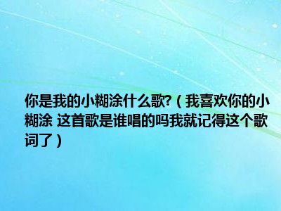 目前应该是有很多小伙伴对于我喜欢你的小糊涂 这首歌是谁唱的吗我就记得这个歌词了方面的信息比较感兴趣,现在小编就收集了一些与我喜欢你的小糊涂 这首歌是谁唱的吗我就记得这个歌词了相关的信息来分享给大家,感兴趣的小伙伴可以接着往下看,希望会帮助到你哦。