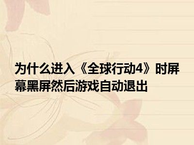 相信目前很多小伙伴对于为什么进入急难先锋4全球行动时,黑屏,随后游戏自动退出都比较感兴趣,那么小编今天在网上也是收集了一些与为什么进入急难先锋4全球行动时,黑屏,随后游戏自动退出相关的信息来分享给大家,希望能够帮助到大家哦。