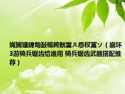 目前应该是有很多小伙伴对于崩坏3游骑兵锯齿给谁用 骑兵锯齿武器搭配推荐方面的信息比较感兴趣,现在小编就收集了一些与崩坏3游骑兵锯齿给谁用 骑兵锯齿武器搭配推荐相关的信息来分享给大家,感兴趣的小伙伴可以接着往下看,希望会帮助到你哦。