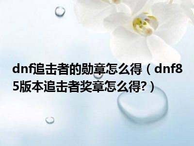 相信目前很多小伙伴对于dnf85版本追击者奖章怎么得?都比较感兴趣,那么小编今天在网上也是收集了一些与dnf85版本追击者奖章怎么得?相关的信息来分享给大家,希望能够帮助到大家哦。