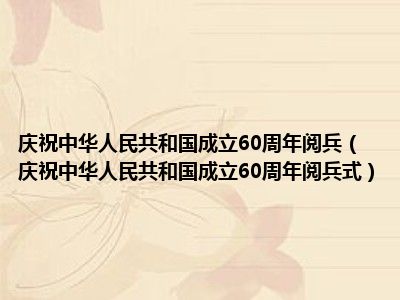 导读 目前是有很多朋友们对于庆祝中华人民共和国成立60周年阅兵式这个信息比较感兴趣,那么小编也是收集了一些庆祝中华人民共和国成立60周年阅兵