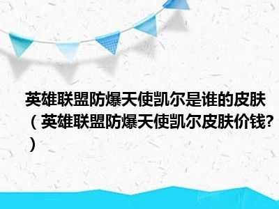 相信目前很多小伙伴对于英雄联盟防爆天使凯尔皮肤价钱?都比较感兴趣,那么小编今天在网上也是收集了一些与英雄联盟防爆天使凯尔皮肤价钱?相关的信息来分享给大家,希望能够帮助到大家哦。