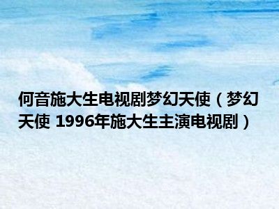 导读 目前是有很多朋友们对于梦幻天使 1996年施大生主演电视剧这个信息比较感兴趣,那么小编也是收集了一些梦幻天使 1996年施大生主演电视剧相
