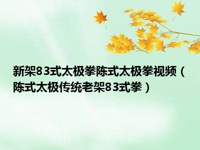 导读 目前是有很多朋友们对于陈式太极传统老架83式拳这个信息比较感兴趣,那么小编也是收集了一些陈式太极传统老架83式拳相关的信息来分享给大家