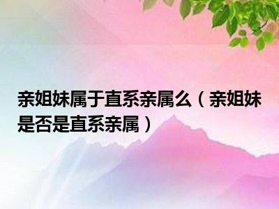 目前大家应该是对亲姐妹是否是直系亲属比较感兴趣的,所以今天CC就来为大家整理了一些关于亲姐妹是否是直系亲属方面的相关知识来分享给大家,希望大家会喜欢哦。