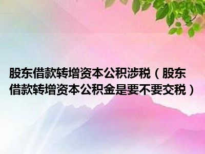 目前大家应该是对股东借款转增资本公积金是要不要交税比较感兴趣的,所以今天CC就来为大家整理了一些关于股东借款转增资本公积金是要不要交税方面的相关知识来分享给大家,希望大家会喜欢哦。