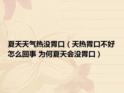 目前大家应该是对天热胃口不好怎么回事 为何夏天会没胃口比较感兴趣的,所以今天小编CC就来为大家整理了一些关于天热胃口不好怎么回事 为何夏天会没胃口方面的相关知识来分享给大家,希望大家会喜欢哦。