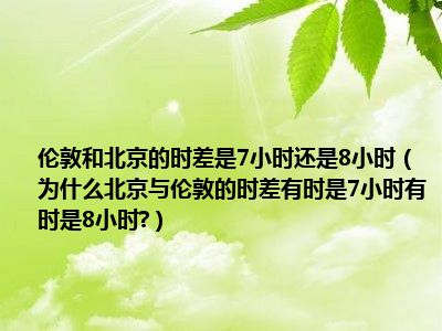 相信目前很多小伙伴对于为什么北京与伦敦的时差有时是7小时有时是8小时?都比较感兴趣,那么小编今天在网上也是收集了一些与为什么北京与伦敦的时差有时是7小时有时是8小时?相关的信息来分享给大家,希望能够帮助到大家哦。