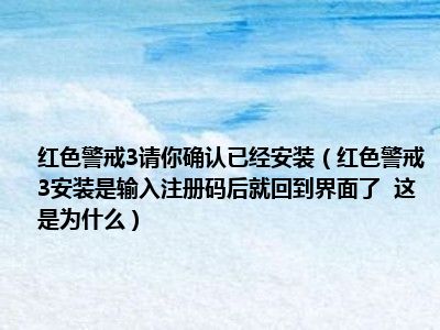 相信目前很多小伙伴对于红色警戒3安装是输入注册码后就回到界面了 这是为什么都比较感兴趣,那么小编今天在网上也是收集了一些与红色警戒3安装是输入注册码后就回到界面了 这是为什么相关的信息来分享给大家,希望能够帮助到大家哦。
