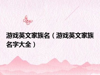 相信目前很多小伙伴对于游戏英文家族名字大全都比较感兴趣,那么小编今天在网上也是收集了一些与游戏英文家族名字大全相关的信息来分享给大家,希望能够帮助到大家哦。