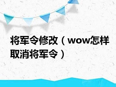 相信目前很多小伙伴对于wow怎样取消将军令都比较感兴趣,那么小编今天在网上也是收集了一些与wow怎样取消将军令相关的信息来分享给大家,希望能够帮助到大家哦。