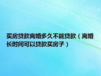 目前大家应该是对离婚长时间可以贷款买房子比较感兴趣的,所以今天CC就来为大家整理了一些关于离婚长时间可以贷款买房子方面的相关知识来分享给大家,希望大家会喜欢哦。
