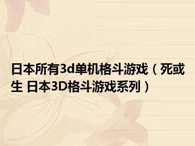 导读 目前是有很多朋友们对于死或生 日本3D格斗游戏系列这个信息比较感兴趣,那么小编也是收集了一些死或生 日本3D格斗游戏系列相关的信息来分