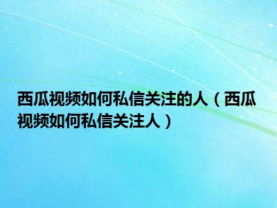 导读 1、西瓜视频如何私信关注人2、西瓜视频私信关注人的方法如下:3、1 西瓜视频不具备直接信任作者的功能;4、2 如果你点了作者的主页,只能关