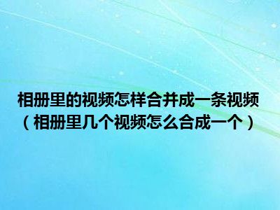 导读 1、相册里几个视频怎么合成一个2、把相册里的几个视频合成一个,只有初三软件才能实现。以剪贴app为例,具体操作步骤如下:3、1 打开裁剪应