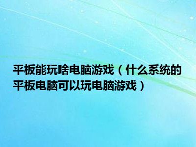 相信目前很多小伙伴对于什么系统的平板电脑可以玩电脑游戏都比较感兴趣,那么小编今天在网上也是收集了一些与什么系统的平板电脑可以玩电脑游戏相关的信息来分享给大家,希望能够帮助到大家哦。