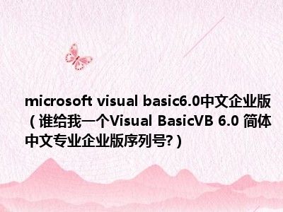 相信目前很多小伙伴对于谁给我一个Visual BasicVB 6.0 简体中文专业企业版序列号?都比较感兴趣,那么小编今天在网上也是收集了一些与谁给我一个Visual BasicVB 6.0 简体中文专业企业版序列号?相关的信息来分享给大家,希望能够帮助到大家哦。