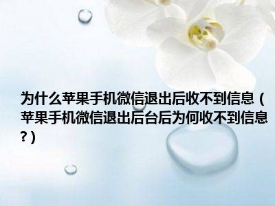 相信目前很多小伙伴对于苹果手机微信退出后台后为何收不到信息?都比较感兴趣,那么小编今天在网上也是收集了一些与苹果手机微信退出后台后为何收不到信息?相关的信息来分享给大家,希望能够帮助到大家哦。