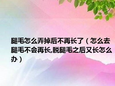 目前大家应该是对怎么去腿毛不会再长,脱腿毛之后又长怎么办比较感兴趣的,所以今天小编CC就来为大家整理了一些关于怎么去腿毛不会再长,脱腿毛之后又长怎么办方面的相关知识来分享给大家,希望大家会喜欢哦。