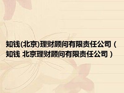 导读 目前是有很多朋友们对于知钱 北京理财顾问有限责任公司这个信息比较感兴趣,那么小编也是收集了一些知钱 北京理财顾问有限责任公司相关的