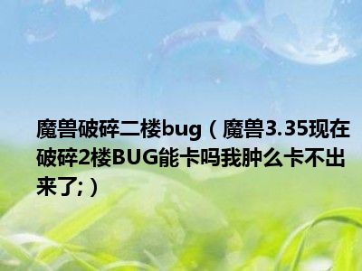 相信目前很多小伙伴对于魔兽3.35现在破碎2楼BUG能卡吗我肿么卡不出来了;。都比较感兴趣,那么小编今天在网上也是收集了一些与魔兽3.35现在破碎2楼BUG能卡吗我肿么卡不出来了;。相关的信息来分享给大家,希望能够帮助到大家哦。
