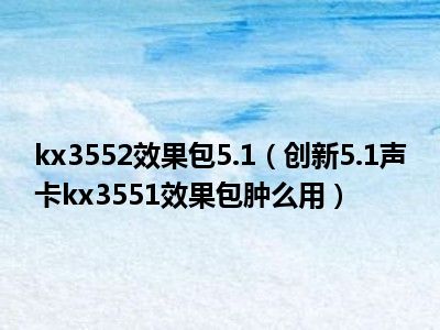 相信目前很多小伙伴对于创新5.1声卡kx3551效果包肿么用都比较感兴趣,那么小编今天在网上也是收集了一些与创新5.1声卡kx3551效果包肿么用相关的信息来分享给大家,希望能够帮助到大家哦。