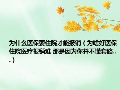 目前应该是有很多小伙伴对于为啥好医保住院医疗报销难 那是因为你并不懂套路...方面的信息比较感兴趣,现在小编就收集了一些与为啥好医保住院医疗报销难 那是因为你并不懂套路...相关的信息来分享给大家,感兴趣的小伙伴可以接着往下看,希望会帮助到你哦。