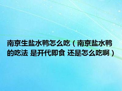 目前应该是有很多小伙伴对于南京盐水鸭的吃法 是开代即食 还是怎么吃啊方面的信息比较感兴趣,现在小编就收集了一些与南京盐水鸭的吃法 是开代即食 还是怎么吃啊相关的信息来分享给大家,感兴趣的小伙伴可以接着往下看,希望会帮助到你哦。