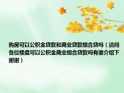 导读 目前大家应该是对请问各位,楼盘可以公积金商业组合贷款吗有谁介绍下,谢谢!比较感兴趣的,所以今天好房网小编CC就来为大家整理了一些关于