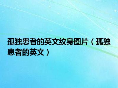 目前应该是有很多小伙伴对于孤独患者的英文方面的信息比较感兴趣,现在小编就收集了一些与孤独患者的英文相关的信息来分享给大家,感兴趣