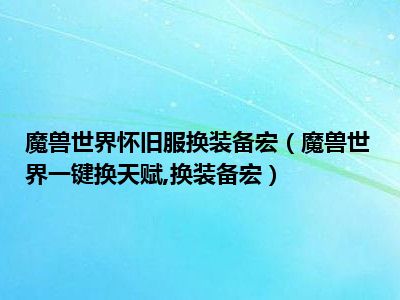 相信目前很多小伙伴对于魔兽世界一键换天赋,换装备宏都比较感兴趣,那么小编今天在网上也是收集了一些与魔兽世界一键换天赋,换装备宏相关的信息来分享给大家,希望能够帮助到大家哦。