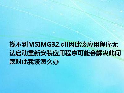 导读 相信目前很多小伙伴对于没有找到MSIMG32.dll,因此这个应用程序未能启动。重新安装应用可能会修复此问题” 这个该怎么处理啊?都比较感兴趣...