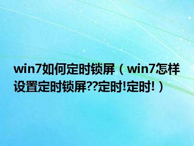 相信目前很多小伙伴对于win7怎样设置定时锁屏??定时!定时!都比较感兴趣,那么小编今天在网上也是收集了一些与win7怎样设置定时锁屏??定时!定时!相关的信息来分享给大家,希望能够帮助到大家哦。