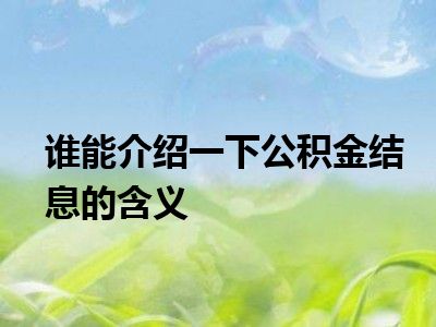 导读 目前大家应该是对谁能介绍下公积金结息是什么意思比较感兴趣的,所以今天好房网小编CC就来为大家整理了一些关于谁能介绍下公积金结