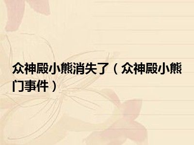 导读 目前是有很多朋友们对于众神殿小熊门事件这个信息比较感兴趣,那么小编也是收集了一些众神殿小熊门事件相关的信息来分享给大家,希望你会喜