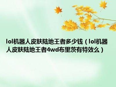 相信目前很多小伙伴对于lol机器人皮肤陆地王者4wd布里茨有特效么都比较感兴趣,那么小编今天在网上也是收集了一些与lol机器人皮肤陆地王者4wd布里茨有特效么相关的信息来分享给大家,希望能够帮助到大家哦。