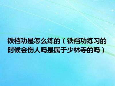 目前应该是有很多小伙伴对于铁裆功练习的时候会伤人吗是属于少林寺的吗方面的信息比较感兴趣,现在小编就收集了一些与铁裆功练习的时候会