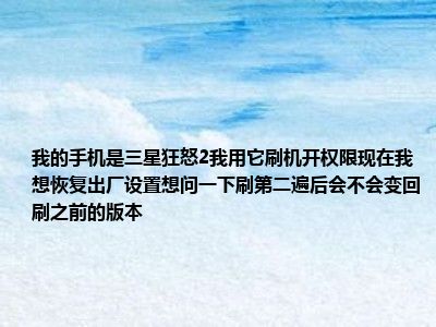 导读相信目前很多小伙伴对于我的手机是三星盖世2,拿去刷了机和开了权限,现在想恢复出厂设置,想问一下次复后会变回刷机前的版本吗?都比较感兴趣...