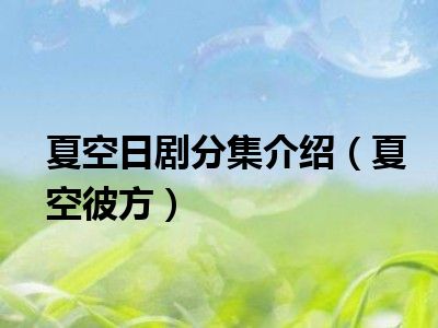 导读 目前是有很多朋友们对于夏空彼方这个信息比较感兴趣,那么小编也是收集了一些夏空彼方相关的信息来分享给大家,希望你会喜欢哦。