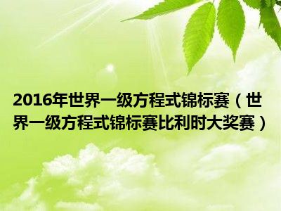 2、中文全称世界一级方程式锦标赛比利时分站。